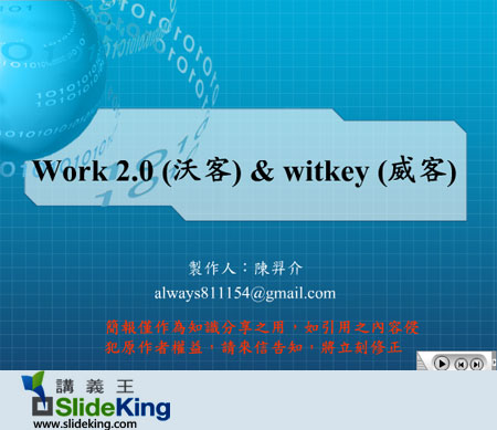[免費講義] 群眾智慧─Work 2.0 (沃客)和witkey (威客) PPT下載