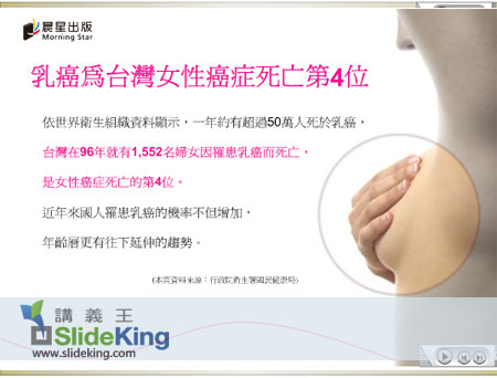 台灣在96年就有1,552名婦女因罹患乳癌而死亡,